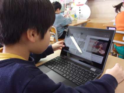 ○1年生に、いろいろな割り箸でっぽうについて調べている子がいました。今作ったてっぽうとは違った仕組みのものを作りたいと考えているそうで、教室にある点数入りの雪だるまの的に向けて遊ぶそうです。これから、夢中になる制作時間と遊びの時間が生まれてきそうです。