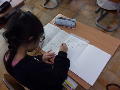 ○漢字、計算チャレンジ週間でしたが、お直しが終わっている練習プリントを使って、もう一度確認しておきたい漢字を選んで練習している3年生がいました。自分の課題をはっきりとつかみ取り組んでいる姿です。