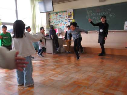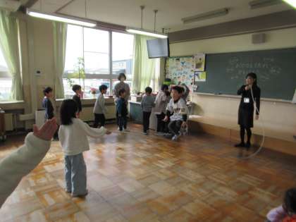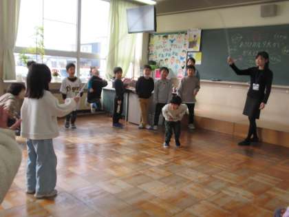 おおなわの8の字跳びにチャレンジしました。斜め前方向に向かって走り抜ける練習から始めました。みんな上手にとべたでしょうか。
