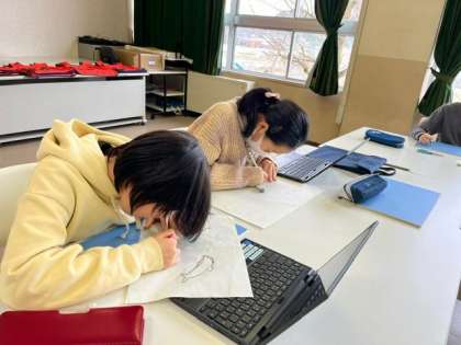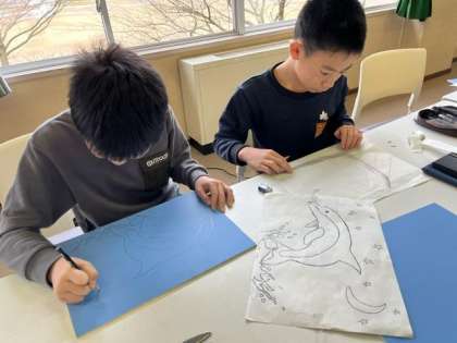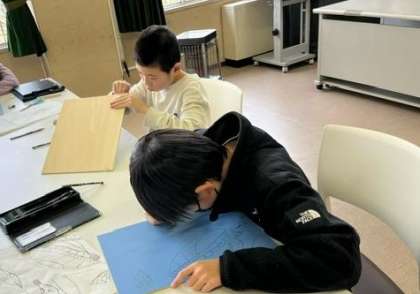 1月31日(水)5年生 図画工作の学習 公開日 2024/01/31 更新日 2024/01/31 5年生 版画の作品を製作中です。今日は描いた下絵を板に描き写す作業をしました。次回はいよいよ彫刻刀で彫っていく作業です。