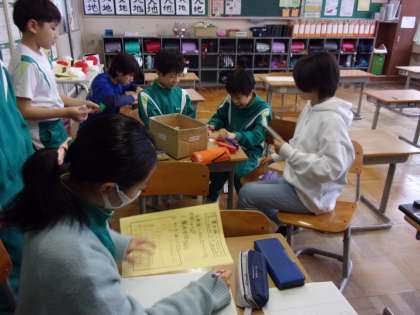 6年生の卒業を全校でお祝いするため、準備を進めています。自分の取り組みたいことについて、アイディアを出しながら、二学年で協力して取り組んでいます。