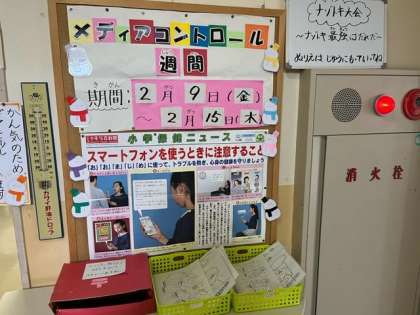 本日9日(金)から15日(木)までメディアコントロール週間です。各自で考えたメディアの目標を達成できるように、工夫して生活していきましょう。ご家庭でのお声かけとご協力をよろしくお願いします。