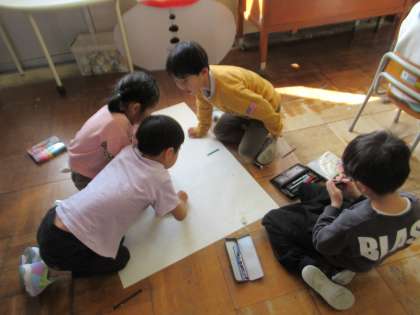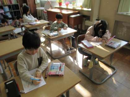 2月14日(水)1年生 体験入学に向けて 公開日 2024/02/14 更新日 2024/02/14 1年生 来週の新一年生体験入学に向けて、着々と準備を進めています。それぞれのチームで協力しながら丁寧な字でプログラムを書いたり、お店のポスターをつくりました。