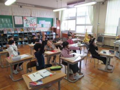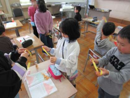 2月19日(月)2年生 算数の学習 公開日 2024/02/19 更新日 2024/02/19 2年生 「半分」の大きさの表し方について、「もとの大きさを2つにわけたときの1つ分を「二分の一」という」、ということを学習しました。また、実際に紙テープを使って、「二分の一」の大きさについて調べてみました。