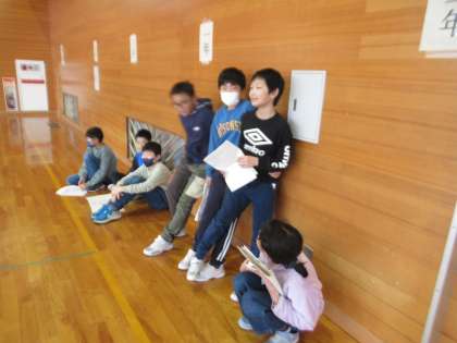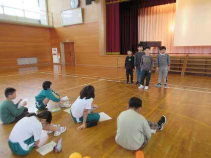 2月19日(月)4・5年生 卒業を祝う集会に向けて 公開日 2024/02/19 更新日 2024/02/19 4年生 6年生への卒業を祝う会に向けて、みんなで楽しむゲームの準備をしています。当日の動きや司会進行について練習をしました。