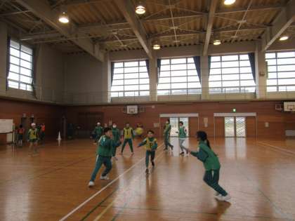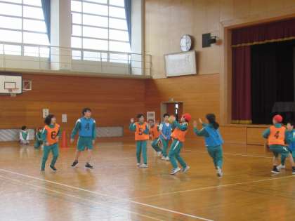 2月21日(水)5、6年生 体育の学習 公開日 2024/02/21 更新日 2024/02/21 6年生 ハンドボールの試合をしました。友達の名前を呼んでパスしたり、相手の動きを見ながら自分のポジションを考えたりしながら、ゲームを楽しんでいます。