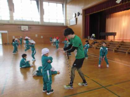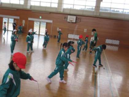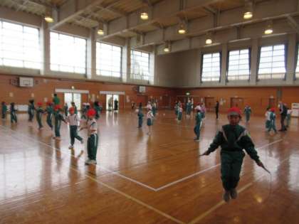 2月26日(月)体育教室〜1・2・3年生〜 公開日 2024/02/26 更新日 2024/02/26 学校行事 生山ヒジキ先生から、1・2・3年生は「こうさとび」や「あやとび」の跳び方を教えていただきました。 なわとびの持ち方や、あや跳び、交差跳びを成功させるためのアドバイスをていねいに楽しく教えていただきました。