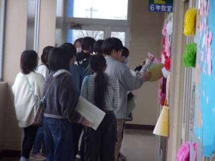 教室に戻った6年生が嬉しそうに見ている姿、6年生がどんな反応をしてくれるかとひっそりと見守る4・5年生の姿、ともにほほえましかったです。