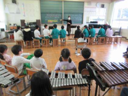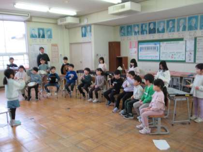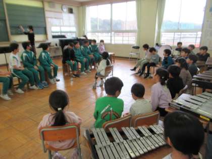 2月29日(木)1・5年生 音楽の学習 公開日 2024/02/29 更新日 2024/02/29 5年生 1年生と5年生とで、合奏の聴き合いをしました。まずは1年生です。体験入学会でも披露した「ラデツキー行進曲」を披露しました。 「音に迫力があった」 「強弱が表現できていてすごかった」 と、5年生に褒めてもらい、満足そうな1年生でした。