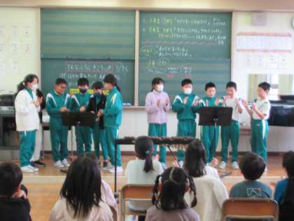 1年生の次は5年生の発表の番です。5年生は器楽の演奏と、クラッピング(手拍子)の2曲を披露しました。
