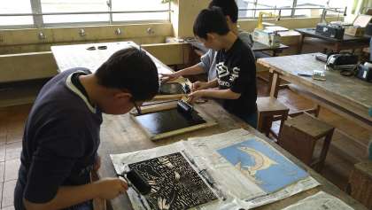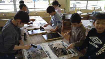 3月8日(金) 5年生 図工の学習 公開日 2024/03/08 更新日 2024/03/08 5年生 版にインクをのせて、刷りました。インクを練って、発色がよくなるようにと、丁寧に仕上げていきました。イメージどおりに刷り上げることができて、うれしそうでした。