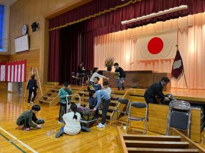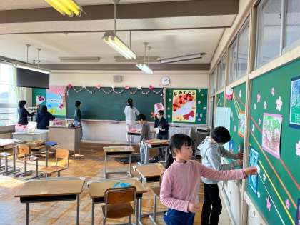 3月15日(金)4・5年生 卒業式準備 公開日 2024/03/15 更新日 2024/03/15 学校行事 月曜日の卒業式に向けて、4・5年生が体育館やランチルーム、6年教室の準備をしました。丁寧に清掃をしたり、机やいすを並べたり、黒板や廊下を賑やかに飾り付けました。 式場も整い、いよいよ月曜日は本番です。