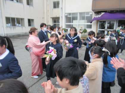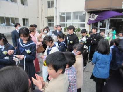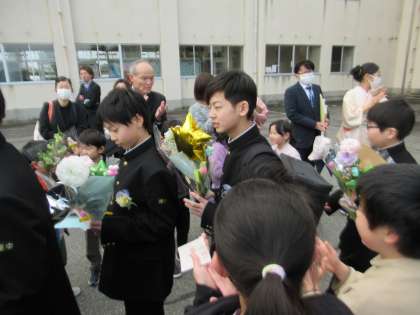 3月18日(月)歓送会2 公開日 2024/03/18 更新日 2024/03/18 学校行事 みんなで道を作り、卒業生を見送りました。「ありがとう!」「がんばってね!」と声を掛け合ったり、手紙やプレゼントを渡し合ったりと、最後のお別れの時間を過ごしました。