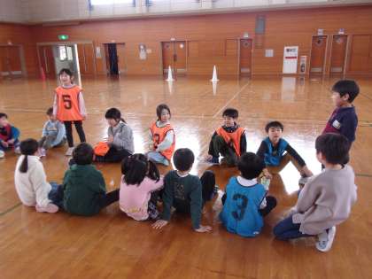 学級集会第2弾は「スポーツ集会」での勝負でした。企画担当者から、安全に運動するための注意事項、初めの言葉があり、ルール説明とチーム発表があり、それからの競技でした。リレーやサッカーで、声をかけ合いながら、思い切り走ったりボールを追ったりしました。「思ったことを言ってください」との担当者の投げかけに進んで挙手し、今日楽しかったことや1年間の自分の成長、これからの運動への挑戦について語る子供たちでした。