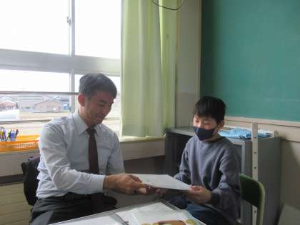 3月22日(金) あゆみ渡し 公開日 2024/03/22 更新日 2024/03/22 学校行事 担任の先生から、修了証とあゆみが渡されました。子供たちは、一年間で成長したことや、自分ががんばったことを思い浮かべながら、嬉しそうに受け取っていました。