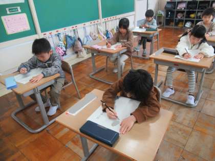 4月11日(木) 1年生 国語科の学習 公開日 2024/04/11 更新日 2024/04/11 1年生 国語科の時間に、自分の名前を書く練習をしました。鉛筆の持ち方や姿勢を確かめた後、文字の形に気を付けながら集中して取り組みました。