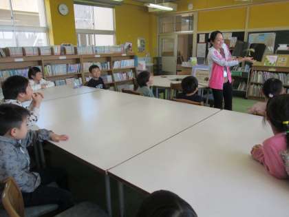 本の読み聞かせでは、真剣にお話を聞いていました。