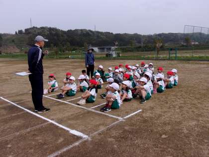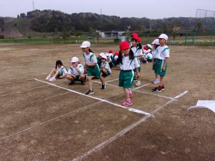 体育科の時間に、走る運動をしました。スキップやカニ走り等、色々な走り方をした後に、50m走をしました。子供たちは、ゴールに向かって力一杯走っていました。