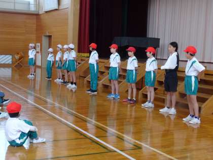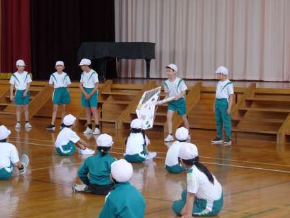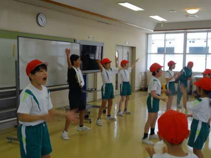 4月26日(金)結団式 公開日 2024/04/26 更新日 2024/04/26 学校行事 結団式が行なわれました。それぞれの団の団役員が、これからの運動会に向けた意気込みを語った後、応援合戦の練習をしました。団長や応援団長を中心に、上学年児童が声をかけ、下学年児童もそれに負けじと大きな声で応えていました。3週間後の運動会に向けて、練習を重ね、成長していく姿に期待しています。