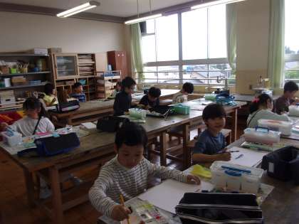5月7日(火)3年生 図工の学習 公開日 2024/05/07 更新日 2024/05/07 3年生 図工の学習では、先週まで取り組んでいた活動をもとに、絵の具を使って画用紙に表しています。混ぜた色や水の量、筆遣いを工夫しながら、自分がよいと感じたものを表現しようとしています。