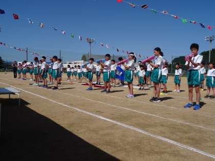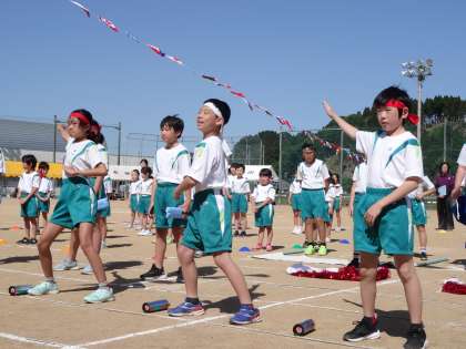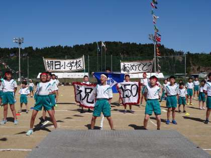 5・6年生のファンファーレの演奏から始まり、全校の「モニューマンの歌」、そしてエールへと続けて、150歳の朝日小学校を力一杯お祝いしました。練習のときには、鍵盤ハーモニカやトランペットの音色、太鼓の連打やテンポ、エールの声の出し方や旗の挙げ方等、よりよくなるように力が入りました。どの演出も決まり、全校の団結心が今日の運動会を華やかに盛り上げました。これからも、朝日小学校をお祝いしていきます。