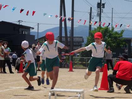 下学年・上学年のどちらも全力を出し切りました。練習したバトンパスがとてもスムーズでした。熱い声援を受け、選手たちは気持ちよく、力強く走ることができました。応援ありがとうございました。