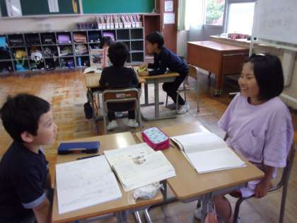 国語科の「もっと知りたい、友だちのこと」では、友達のことを詳しく知ったり、話を広げたりするための質問の仕方を学習しました。今日はグループで互いの話を聞き合い、話題に応じた質問をすることができました。