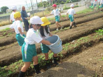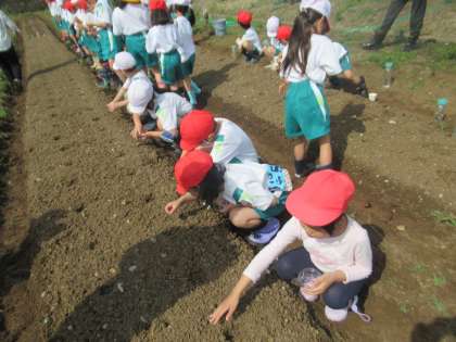 5月30日(木)150周年記念 ひまわりの種植え 公開日 2024/05/30 更新日 2024/05/30 学校行事 地域の方々に教わりながら、ひまわりの種植えを行いました。かしこく委員会の提案のもと、全校みんなで協力して、学校前の畑にたくさんの種を植えることができました。地域の皆様、お世話いただき、ありがとうございました。明日からの水やりについて、学年で担当を決めました。朝日小150周年を祝うきれいなひまわりが咲き誇ることを願って、これからもお世話をがんばっていきます。