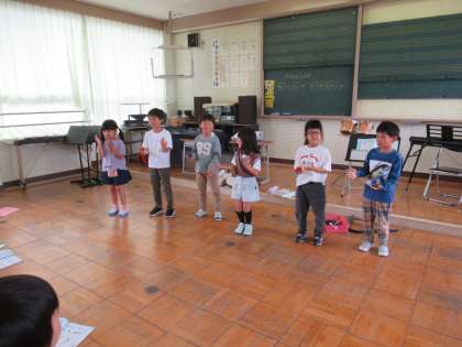 6月6日(木) 1年生 音楽科の学習の様子 公開日 2024/06/06 更新日 2024/06/06 1年生 音楽科の時間に、リズムを打つ練習をしました。手拍子で練習をした後、カスタネットやタンブリンを使ってリズムを打ちました。子供たちは、楽器の音を楽しみながら、練習に取り組んでいました。