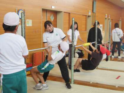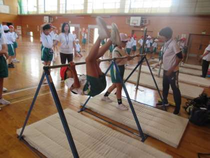 上学年では、さらに高度な技にも挑戦していました。最後の振り返りでは、「前より足が上がるようになって嬉しかった」「次はもっとできるようになりたい」と講師の方に感謝の気持ちを伝えることができました。