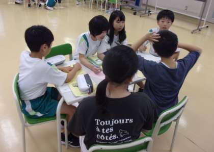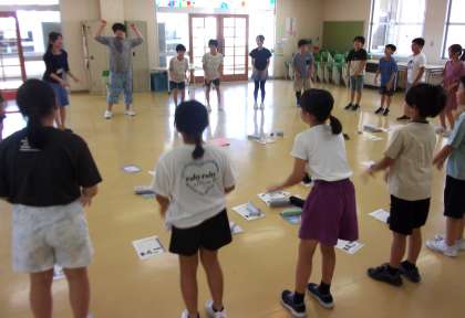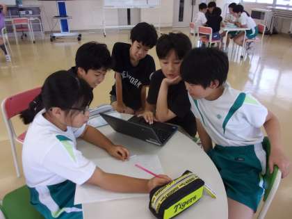 キャンプファイヤーに向けて、みんなで声をそろえて歌い、楽しく踊っています。また、班ごとに、みんなで盛り上がれるような出し物を計画、準備しています。クイズやゲーム等、趣向を凝らした内容になっていて、素敵な夜のひとときになりそうです。