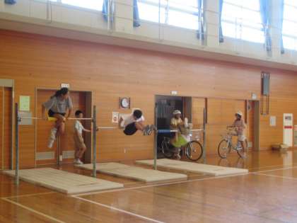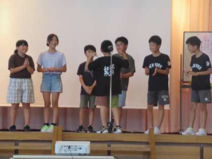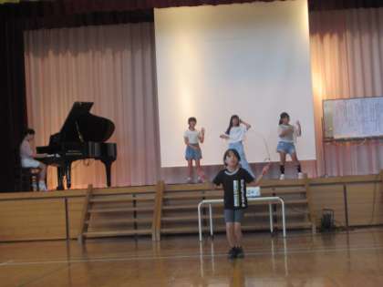 7月5日(金)七夕集会(きらきら星集会) パート3 公開日 2024/07/05 更新日 2024/07/05 学校行事 4年生はすてきなダンスやキャッチボール、跳び箱、なわ跳び、5年生はダジャレDJ、6年生は自転車や鉄棒等を披露しました。体育館は、歓声や拍手、笑顔でいっぱいになりました。