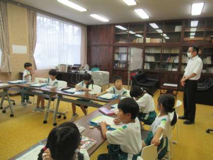 7月12日(金) 1年生 生活科の学習の様子 公開日 2024/07/12 更新日 2024/07/12 1年生 生活科の「学校探検」の学習で、校長先生にインタビューをしました。校長先生のお仕事や、校長室にあるものについて質問をしました。子供たちは、進んで質問をし、詳しく調べていました。