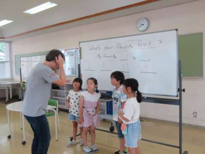 7月19日(金) 1・2年生 外国語活動 公開日 2024/07/19 更新日 2024/07/19 1年生 1学期最後のジョナサン先生との外国語の学習を行いました。子供たちは、元気よく発音するなど、楽しみながら活動に取り組んでいました。