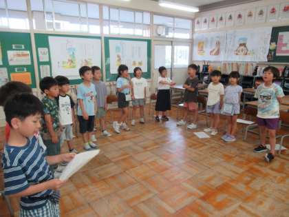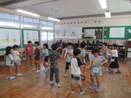 7月23日(火) 1年生 「1学期 楽しかったよパーティー」 公開日 2024/07/23 更新日 2024/07/23 1年生 学級集会として「1学期楽しかったよパーティー」を行いました。みんなで歌を歌ったり、「フルーツバスケット」や「貨物列車」のゲームをしたりしました。みんなで楽しい時間を過ごしました。