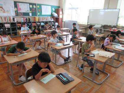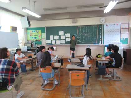 始業式の後は、各学級で夏休みの思い出を振り返ったり、自分の作品を紹介したりしました。夏休みに一人一人が一生懸命に取り組んだ様子が伝わってきました。