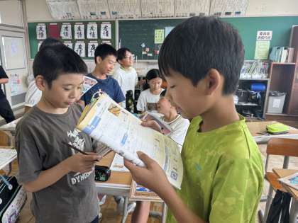 9月9日(月)6年生 外国語科 公開日 2024/09/10 更新日 2024/09/10 6年生 「My Weekend」の学習で、ateやenjoyed等の過去形の動詞を使って、自分の経験を伝える学習をしています。今日は、先週末にしたことについて、友達の話を聞き、「Oh, nice!」などのリアクションをとったりしていました。