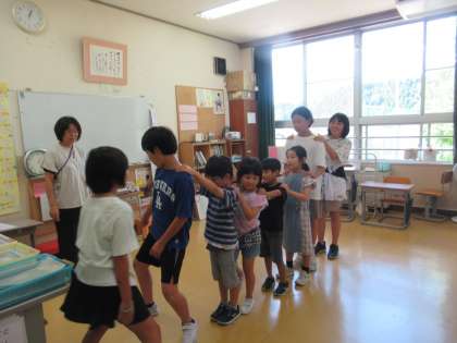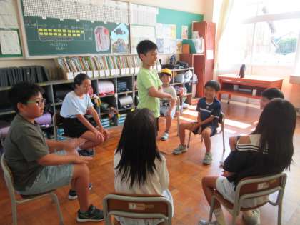 9月11日(水)なかよし班活動 公開日 2024/09/11 更新日 2024/09/11 学校行事 なかよし班で、ドッジボールやフルーツバスケット等の自由遊びをしました。列になって一番後ろの人を守るといった新しい鬼ごっこをしている班もありました。どの班も皆で仲良く楽しく活動できました。