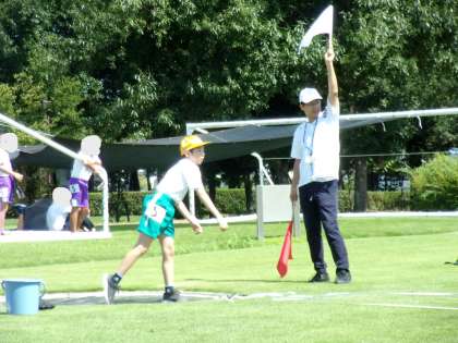 9月13日(金)6年生 チャレンジ陸上記録会 公開日 2024/09/18 更新日 2024/09/18 6年生 チャレンジ陸上記録会に出場し、50m走、走り幅跳び、ソフトボール投げの3種目にチャレンジしました。暑い中でしたが、自己ベストを目指して頑張りました。緊張からかいい記録が出せなかったという声や、練習通りにできたという声もあり、また来週の校内陸上記録会に期待したいところです。
