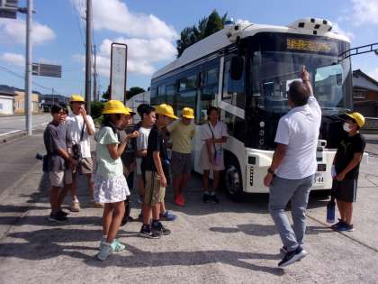 9月26日(木)6年生 自動運転バス試乗会 公開日 2024/09/26 更新日 2024/09/26 6年生 婦中町で実施されている自動運転バスの実証実験試乗会にお誘いいただき、6年生児童が参加してきました。地域の人の願いや運行に向けた課題について書かれた新聞記事も読み、実際に乗った6年生は「高齢者の人も乗りやすくて良い」「危険を検知して自動でブレーキがかかるのがすごい」「少しずつ進化しているので、これからが楽しみ」などと話しました。