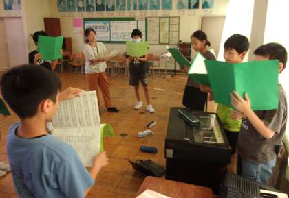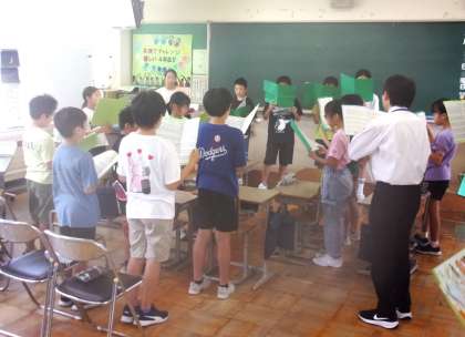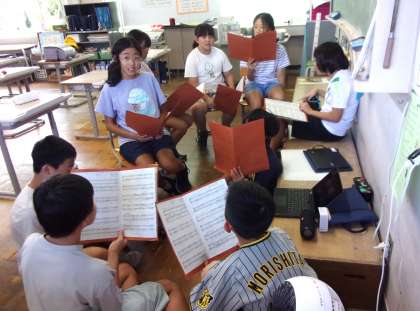 パートごとに、6年生を中心に「ここの音が迷うからもう一回やりたい」「高音部につられないように、高音部の旋律を流しながら歌おうよ」「数人で歌って確かめよう」などと、それぞれのやり方で練習を重ねてきました。今日は、パートで音や声がそろうようになり、全体で合わせた練習のときにその成果がしっかりと感じられました。言葉を丁寧に紡ぎながらきれいな発声を目指しています。