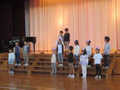 学習発表会の練習の様子です。子供たちは自分の台詞を堂々と言ったり、友達と息をそろえながら演奏したりするなど、一生懸命に練習に取り組んでいました。