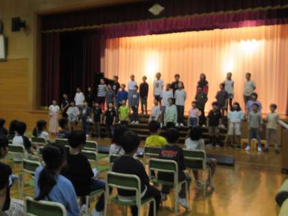 10月23日(水)朝日っこタイム 公開日 2024/10/23 更新日 2024/10/23 学校行事 全校で150周年記念式典で歌うモニューマンの歌の練習をしました。上学年と下学年で歌い合い、感想を伝えました。下学年が上学年のフレーズのまとまりを意識したなめらかな歌い方に気付き、練習したことで、すてきな歌声になりました。