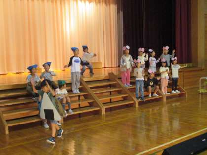 10月24日(木) 1年生 学習発表会の練習の様子 公開日 2024/10/24 更新日 2024/10/24 1年生 いよいよ今週末に迫った学習発表会。子供たちは、よりよい劇にしようと日々練習に励んでいます。見てくださる方に笑顔や元気を届けたいと意気込んでいる子供たち。当日に向けて、みんなで協力してがんばります。