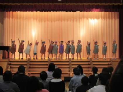 1年生は「おむすびころりん〜150しゅうねん おれいのうたげ〜」と題して、発表しました。子供たちは、自分の台詞を堂々と言ったり、ダンスを元気いっぱいにおどったりなど、一生懸命に取り組みました。
