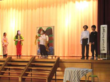 6年生は、「あさひむかしばなし150周年Special」と題し、朝日に古くから伝わる昔話を劇にしました。友坂地区のキツネのいたずらや朝日滝の伝説、安田善次郎の人生について、原作を読み解きながら、どのように演技で伝えるか、どうすれば見てくださる人に朝日のすばらしさを伝えることができるかなどを時間をかけて考えてきました。今日の劇で、壮大な歴史や豊かな自然、偉大な人々が朝日を築き上げてきたのだということが、少しでも伝えることができたのではないでしょうか。