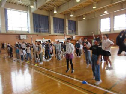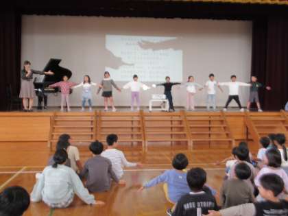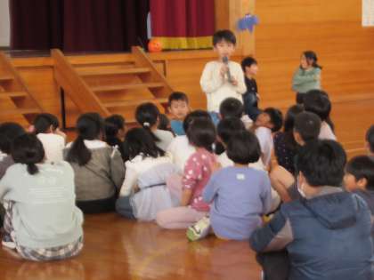10月31日(木)ハロウィン集会 その2 公開日 2024/10/31 更新日 2024/10/31 学校行事 次に、全校で「世界を旅する音楽室」を歌います。2年生の児童が振り付けをレクチャーしました。最後は、みんな元気よくジャンプ!楽しい合唱になりました。 最後のインタビュータイムでは、「司会でしっかり話すことができて良かった」「またクイズで全問正解したい」などと話していました。