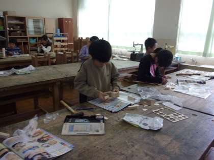 11月5日(火)3年生 公開日 2024/11/05 更新日 2024/11/05 3年生 先週から、「トントンどんどんくぎうって」の学習が始まり、子供たちは金づちの使い方を学び、くぎ打ちに取り組んでいます。