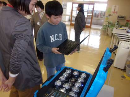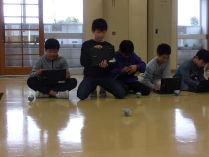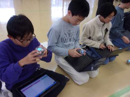 プログラミング教育として、専門の先生が来校され「Sphero BOLTを動かそう」という授業をしていただきました。転がるロボットを動かすために、クロムブックに操作の指示を入力します。子供たちは、何度も調整したり指示を細かく変えたりしながら、ロボットを動かすことに夢中でした。最初は思い通りにいかなくても、何度も繰り返しやってみることは、ロボットの操作だけでなく、これからの人生でも大切なことだということも教えていただきました。