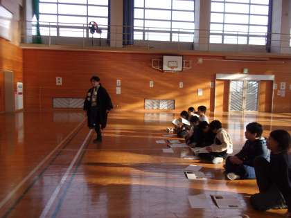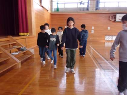 11月20日(水)6年生 狂言に親しもう 公開日 2024/11/20 更新日 2024/11/20 6年生 狂言を習っておられる先生に来ていただき、狂言について学びました。狂言と学習発表会で披露した劇との違いを考え、舞台の形や歩き方、話す言葉や抑揚の付け方、小道具の使い方等について教えていただきました。最後には、狂言で使う「おゆるされませ」「やるまいぞ」などと言いながらすり足の歩き方も実際に体験しました。